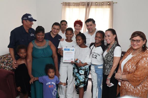 La viceministra y las autoridades recorrieron el sitio de las nuevas torres y acompañaron a la señora Marisela James de Jaén, junto a seis de sus nueve hijos, a abrir la puerta de su nuevo apartamento en la torre 52.