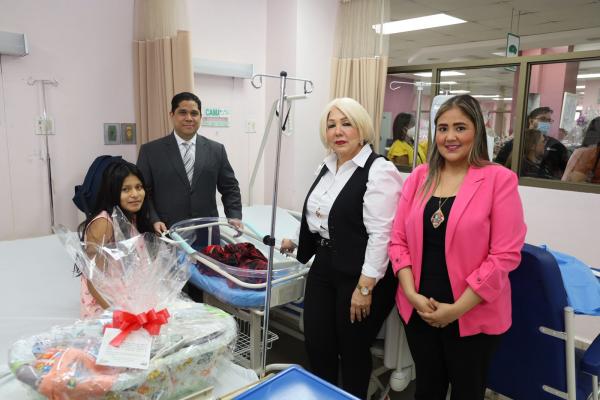 Continuando con las actividades de aniversario, el Banco Hipotecario Nacional realizó la entrega de canastillas a las madres de los recién nacidos en la fecha conmemorativa, en un emotivo acto llevado a cabo en el Hospital Santo Tomás.