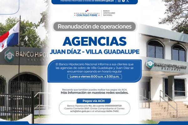 Pueden realizar sus pagos en las agencias de Villa Guadalupe y Juan Díaz