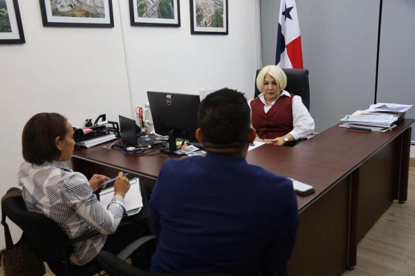 La Secretaria General del Banco Hipotecario Nacional, Idalia Valdés, sostuvo una reunión de trabajo con Ismael Atencio, representante del corregimiento Ernesto Córdoba Campos, con el objetivo de coordinar acciones para la regularización de propiedades en el sector.