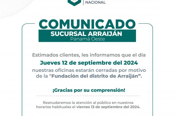 Comunicado - Sucursal de Arraiján